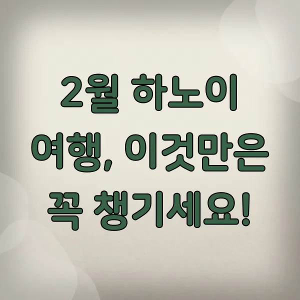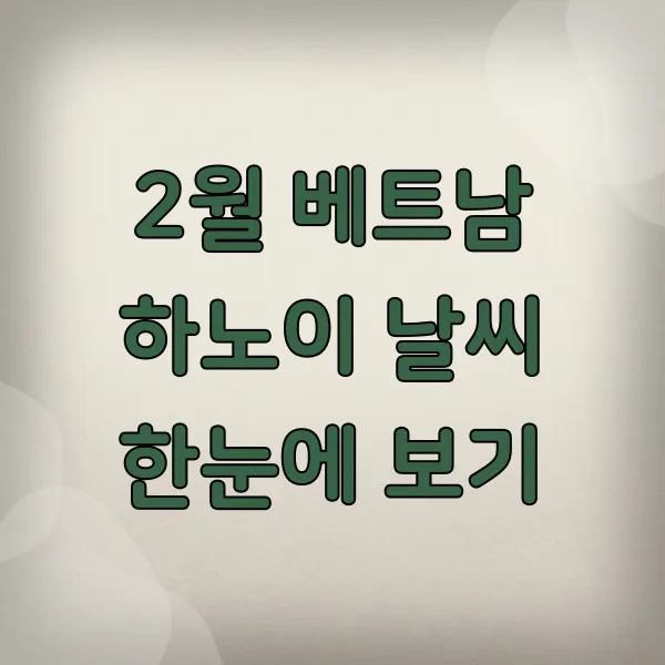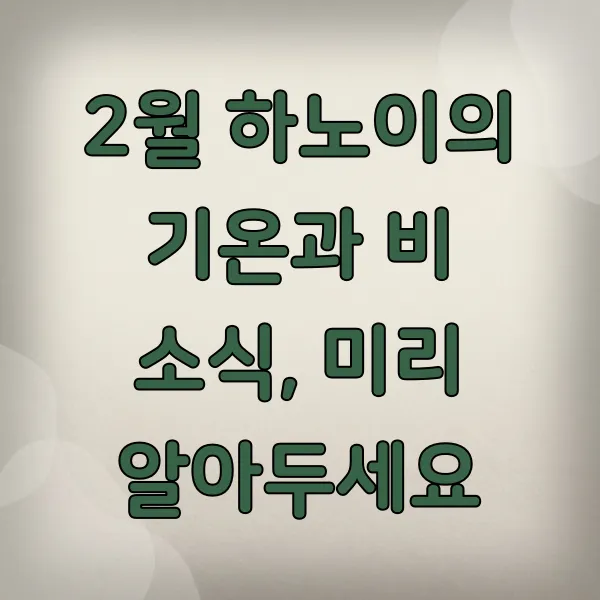 2월은 하노이에서 비교적 건조한 편이지만, 가끔 갑작스러운 소나기 가 내릴 수도 있다는 점을 염두에 두시면 좋아요. 휴대용 우산이나 얇은 레인코트를 준비하면 갑작스러운 날씨 변화에도 당황하지 않고 여행을 즐길 수 있답니다.