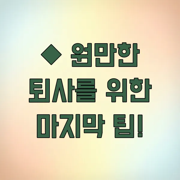 원만한 퇴사는 다음 단계로 나아가는 긍정적인 에너지를 만들어 준답니다. 꼼꼼한 준비와 진심 어린 태도로 유종의 미를 거두시길 바랍니다!