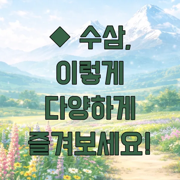 제 나이도 어느덧 40대 중반을 넘어가니, 예전 같지 않은 체력과 컨디션에 괜히 움츠러들 때가 많더라고요. 특히 환절기만 되면 기운도 없고, 집중력도 떨어지는 것 같아 신경 쓰였어요. 그러다 문득 예전부터 건강에 좋다는 인삼, 그중에서도 신선함이 살아있는 수삼이 떠올랐답니다. 오늘은 제 경험을 바탕으로 수삼의 놀라운 효능과 다양하게 즐기는 방법, 그리고 똑똑하게 보관하는 꿀팁까지 모두 알려드릴게요!