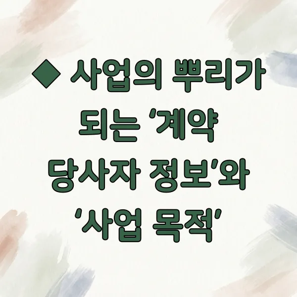 ◆ 사업의 뿌리가 되는 ‘계약 당사자 정보’와 ‘사업 목적’